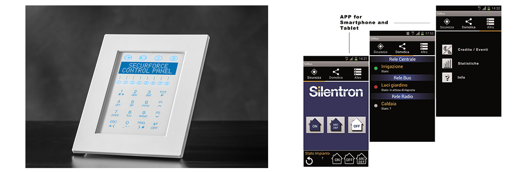 Silenya Touch avec clavier tactile intégré et Silenya Soft, programmable et gérable via WiFi à partir d’un PC, d’une tablette ou d’un smartphone. À la fois performantes et simples à programmer et à utiliser. Basées sur le Web et dûment protégées, elles permettent de faire à distance tout ce qu’il est possible de faire sur place... et les possibilités sont vraiment nombreuses