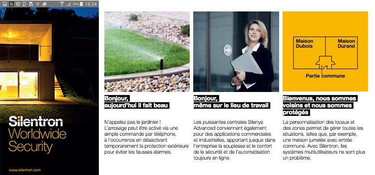 La nouvelle ligne Silenya Advanced convient pour les installations résidentielles, commerciales et industrielles. D’une capacité de 99 zones, contrôle et commande jusqu’à 32 automatismes, tant localement qu’à distance, avec une communication bidirectionnelle en mode mains libres et numérique, confirmations des commandes, vérification des événements à travers des prises de photos et ce grâce aux détecteurs spéciaux avec caméra intégrée. Connectable au réseau, programmable et gérable à distance via un PC, tablette, smartphone ou en ligne avec des communications très avancées adapter aux innovations techniques de demain, la mise à jour via le WEB, permet de conforte votre investissement de façon durable.