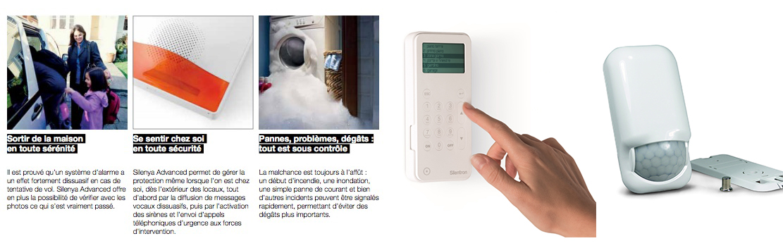Des solutions de protection s’adaptant à tout type d’environnement, que ce soit à l’extérieur des locaux (détecteurs d’extérieur etanche sans fil), sur le périmètre (détecteurs pour portes/fenêtres sans fil ) ou à l’intérieur des locaux (détecteurs volumétriques et microphoniques sans fil) transmission d’alertes via la ligne de téléphone fixe et/ou GSM et par l’envoi de photos permettant de vérifier l’état des lieux, de même que par la diffusion de messages vocaux et des signaux sonores puissants (sirènes). Les systèmes Silentron permettent de commander par radio les charges électriques à travers de simples messages téléphoniques, vous informez d’un éventuel début d’incendie, d’inondation, ou d’écarts de température.