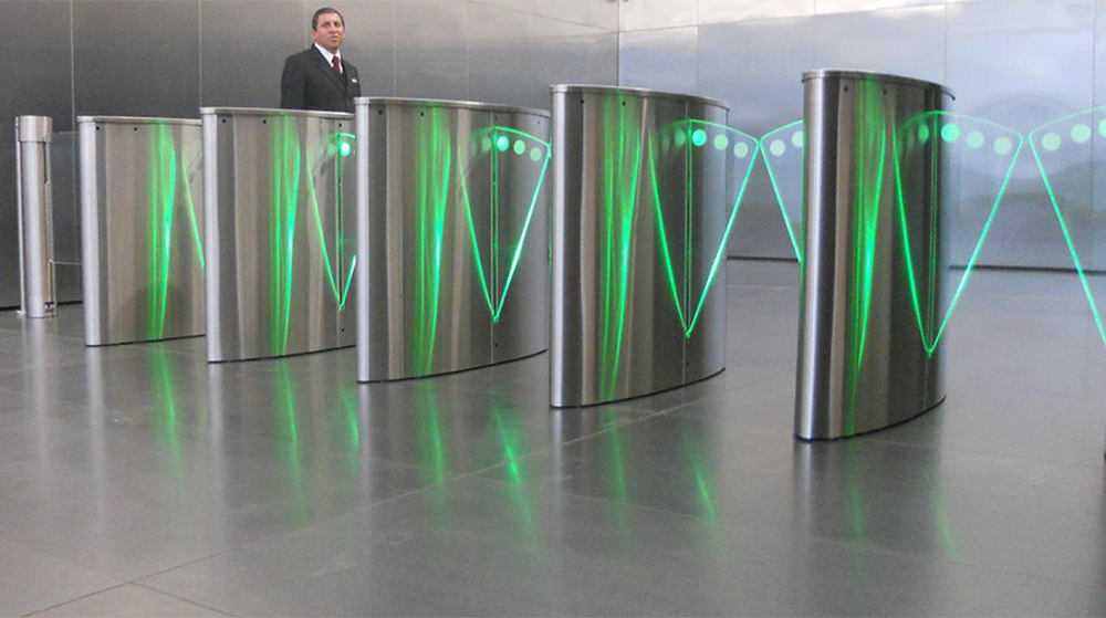 Pour décharger le personnel de réception, les tripodes assurent le contrôle d’accès dans des situations diverses. Le tripode régule le flux de personnes d’une manière confortable, même dans le cas d’un flux de passage élevé. En cas d’urgence, des installations avec bras rabattables libèrent le passage dans les deux sens et garantissent la fonction issue de secours, le bras rabattu peut être repositionné automatiquement après la situation d’urgence. Cela s’effectue par une commande du personnel autorisé.